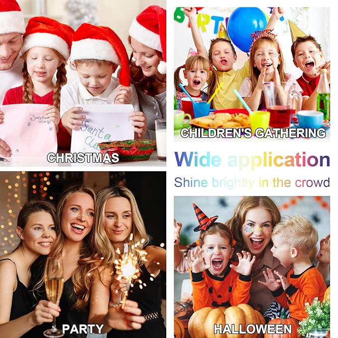 - 【Long-Lasting Cosmetic Glitter】these gold face glitter stickers are waterproof, ensuring they stay in place throughout any event, making them the perfect rave accessories for women and kids.