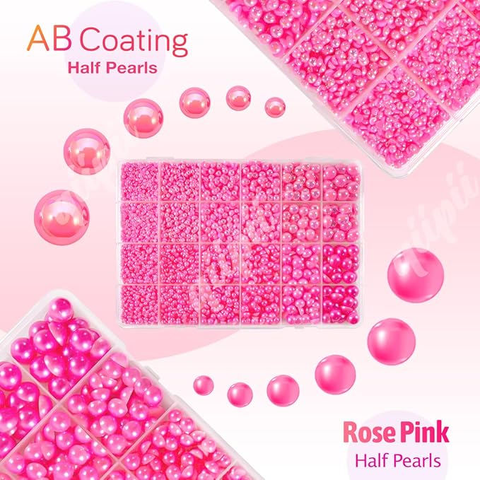 qiipii 2 Styles Solid Hot Pink+ Rose Pink AB Flatback Pearls for Bedazzling Crafting 3mm-10mm Half Round Pearls Beads Gems Bedazzler Kit for Nails Face Eyes Makeup Tumblers Bottles DIY Crafts Shoes