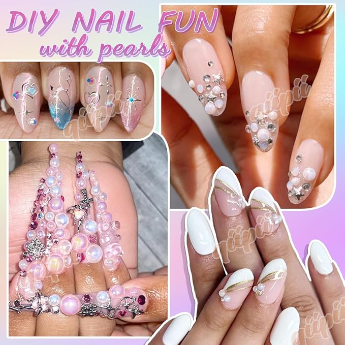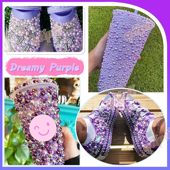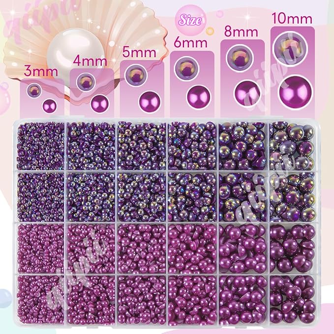 qiipii 2 Styles Solid Purple+ Dark Purple AB Flatback Pearls for Bedazzling Crafting 3mm-10mm Half Round Beads Gems Bedazzler Kit for Nails Face Eyes Makeup Tumblers Bottles DIY Crafts Shoes Phones
