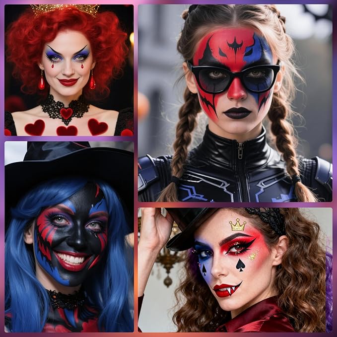- [Creative Halloween Makeup] Bright colors, suitable for Halloween makeup themes, masquerade balls, parties, cosplay of various movie characters, club activities, Day of the Dead makeup or other makeup styles. You can create as many characters as possible, such as Fiona, Shrek, the Hulk, the Witch, Fitty, Camora, the Beast Boy, the vampire, the Clown, the Zombie, etc