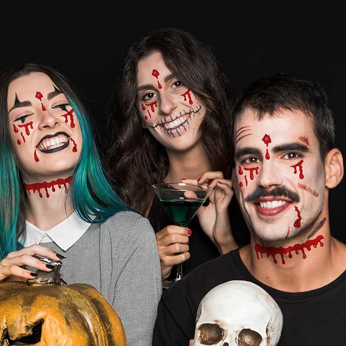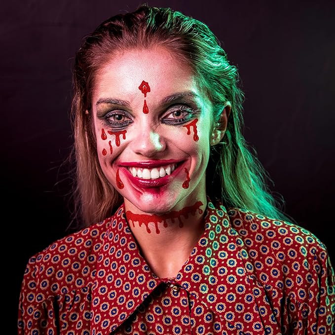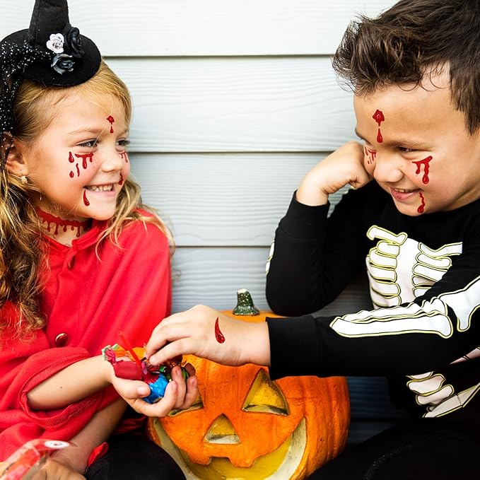Crystal Bleeding Face Gems, Scar Jewels, Fake Red Blood Gem Tattoo Stick on Eye for Men Women Kids Halloween Prank Makeup Costume, 2-Pack
