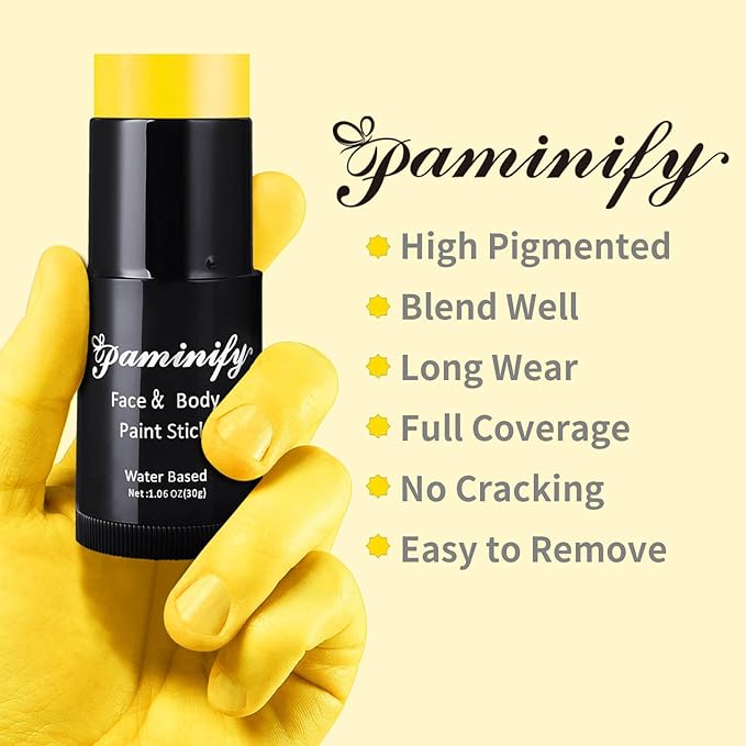 - Skin-Friendly & Non-Toxic:Crafted with safe, non-toxic ingredients, this yellow face & body paint stick is gentle on your skin, ensuring a comfortable application for all-day wear during events, parties, or performances