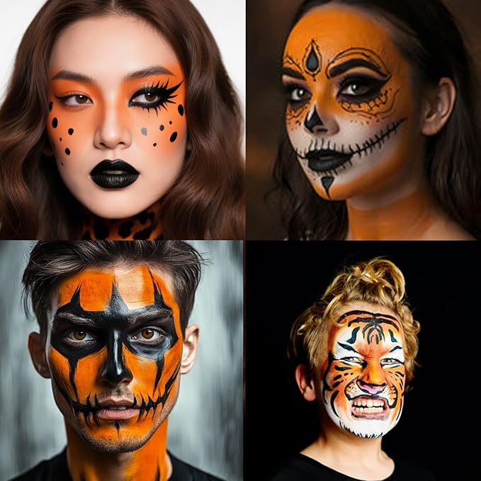 - High Pigment, Smooth Application:Experience smooth, high-coverage color with orange face paint stick. For deeper shades, apply a second layer for an even finish. Perfect for creating halloween makeup looks