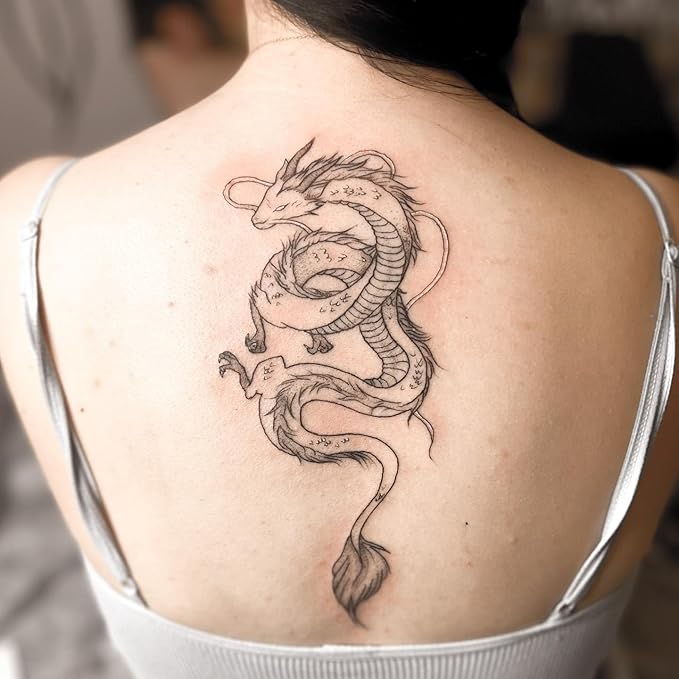 Large Temporary Tattoos Women Temporary Neck Tattoos Temporary Realistic Flower Chest Tattoo for Adults (dragone 2)