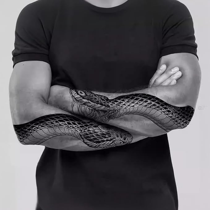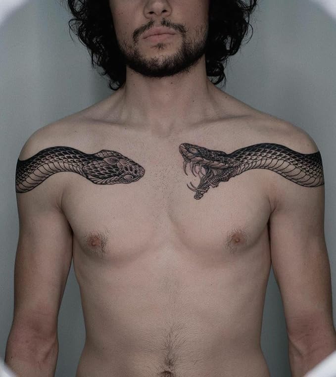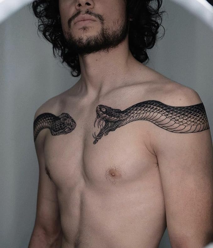 Large Temporary Tattoos Women Temporary Neck Tattoos Temporary Realistic Flower Chest Tattoo for Adults (Snake 2)