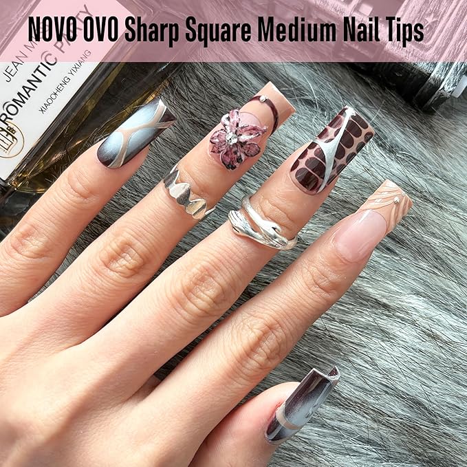 NOVO OVO Sharp Square Medium Nail Tips Press on, Natural (Not Sculpted) No C Curve Soft Gel Double Matte Clear Fake Nail Extension,Full Cover False Nails for Salon DIY Manicure x 15 Sizes 450 pcs