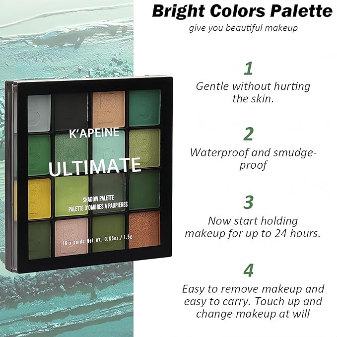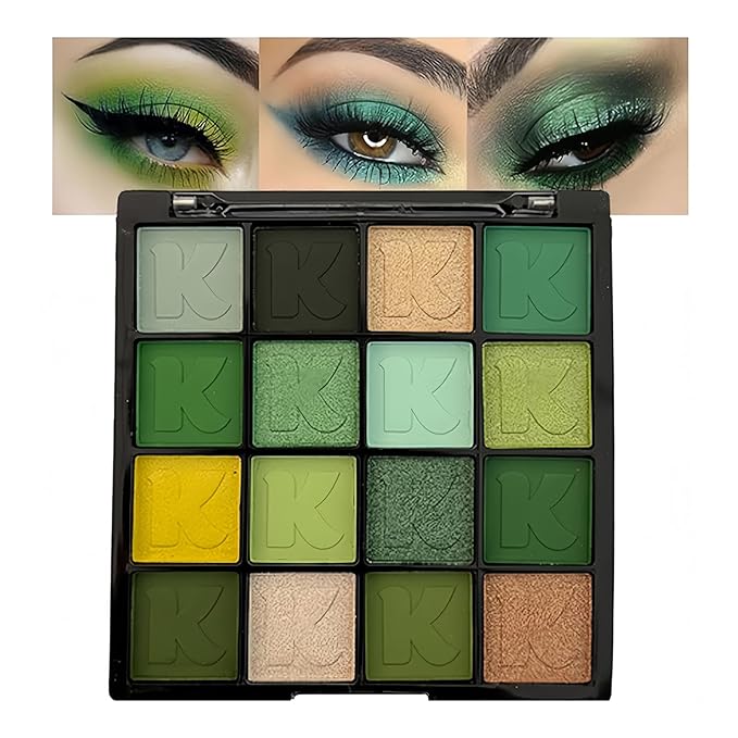 K'APEINE Green Eyeshadow Palette, Matte Glitter Eye Shadow Palette Pigmented Eye Makeup Palette 16 Colors Goth Eyeshade Kit for Rave Parties, Music Festival, Performance, Costume and Halloween