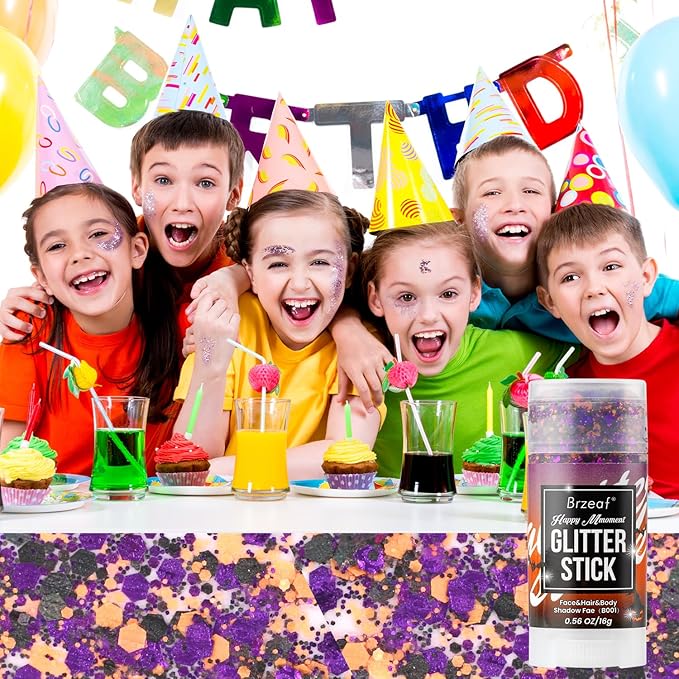 Brzeaf Orange Purple and Black Body Glitter Stick, Shimmery& Long Lasting, Halloween Hair Eyeshadow Face Body Glitter, Singer Concert Music Rave Festival, Glitter Stick Makeup & Face Glitter Gel
