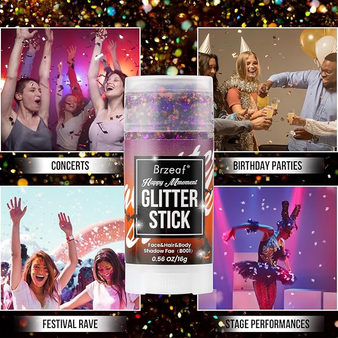 - 【Bright and Lasting Hold】Our halloween body glitter stick is makeup product designed specifically for use as accessories for halloween events. Our face glitter stick will sparkle and shine, the color and shine of the sequins change with visual changes, releasing a dazzling light, allowing you to party and create your own sparkling look.