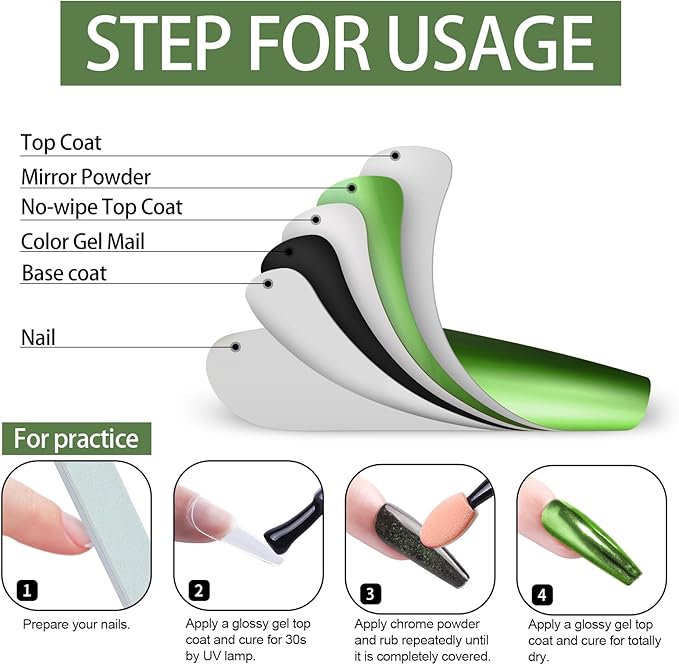 About This 【Sparkling Glossy Mirror Effect】1 PCS chrome nail mirror pigment powders.They can make many different design for your gel... Read more