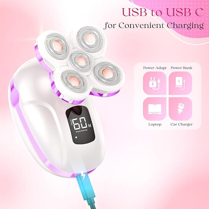 - Long-Lasting Battery with LED Intelligent Display:this electric razors is equipped with a high-quality lithium-ion battery that provides long-lasting performance.Perfect for travel and on-the-go grooming. The hair remover razor for women can accurately show the percentage of the battery power.