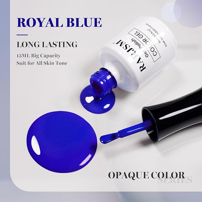 RARJSM Royal Blue Gel Nail Polish 1PCS 15ML Long Lasting Opaque Deep Blue Milky Creamy Gelpolish Soak off U V Curing Required Nail Art French Manicure Salon DIY at Home