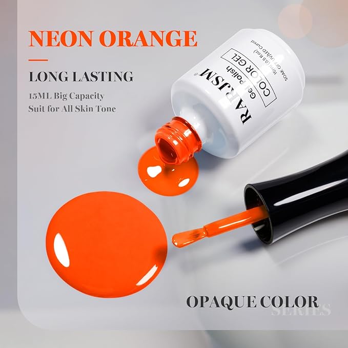 RARJSM Neon Orange Gel Nail Polish 1PCS 15ML Long Lasting Opaque Bright Fluorescent Orange Milky Creamy Gelpolish Soak off U V Curing Required Nail Art French Manicure Salon DIY at Home