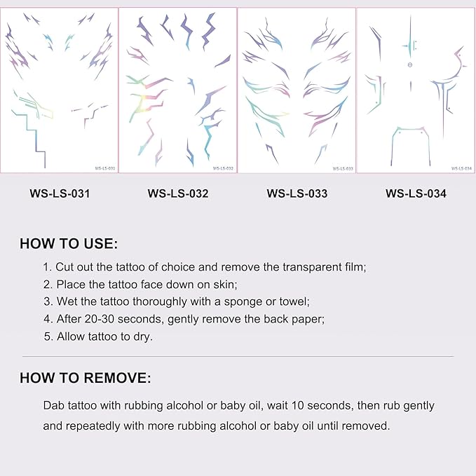 - 【EASY APPLICATION & REMOVAL】No complicated steps! Just peel off the clear film, apply the tattoo to clean, dry skin, dab with a damp paper towel, remove the paper, and let it dry. Removal is equally hassle-free, easily remove with body oil.