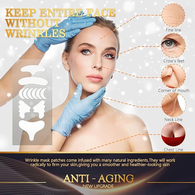 - Complete Anti-Wrinkle Patch Set: Includes 11 silicone wrinkle patches: 1 neck patch, 1 forehead patch, 1 chest pad, 2 nasolabial fold patches, and 6 eye wrinkle patches. Designed to smooth fine lines on multiple areas.