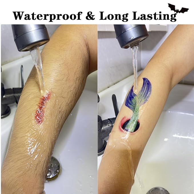 - 【Long-Lasting & Waterproof Wear】 Our tattoos are sweatproof and waterproof, staying vivid for 3-5 days without smudging. Ideal for all-day Halloween events or multi-day conventions. Made with non-toxic, skin-safe materials that meet international cosmetic safety standards.