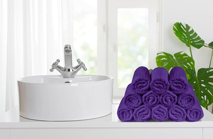 Softolle 100% Cotton Ring Spun Wash Cloths – Bulk Pack of Washcloths – 12x12 Inches – Wash Cloth for Face, Highly Absorbent, Soft and Face Towels (Purple, 60 Pack)