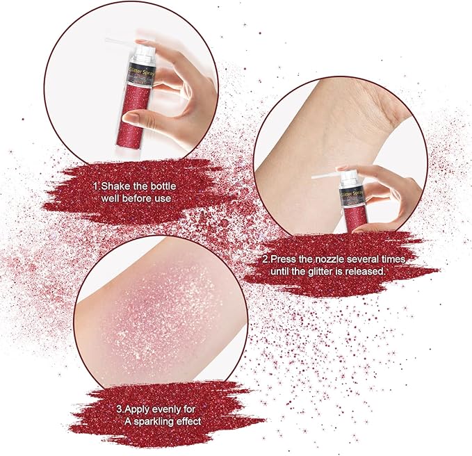 - Easy to Use: Spray from 20-30cm away onto hair, body, or clothes, and let it set for 60 seconds. The ultra-fine glitter hairspray glitter mist clings perfectly, delivering long-lasting radiance with zero hassle. Glam up instantly and effortlessly!