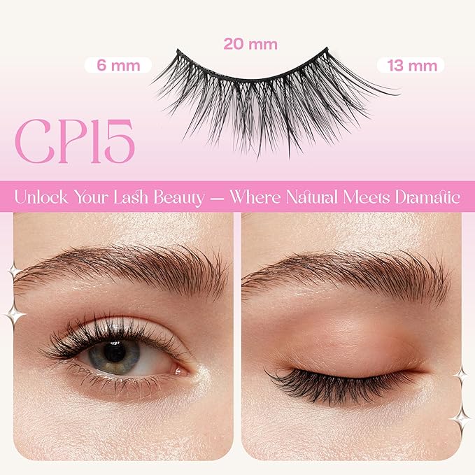 CALAILIS Self Adhesive Eyelashes 5 Pairs Natural Look Press On Lashes No Glue Need Eyelashes Reusable Cat Eye Wispy Self-adhesive False Lashes with Replacement Adhesive Strips (CP15)