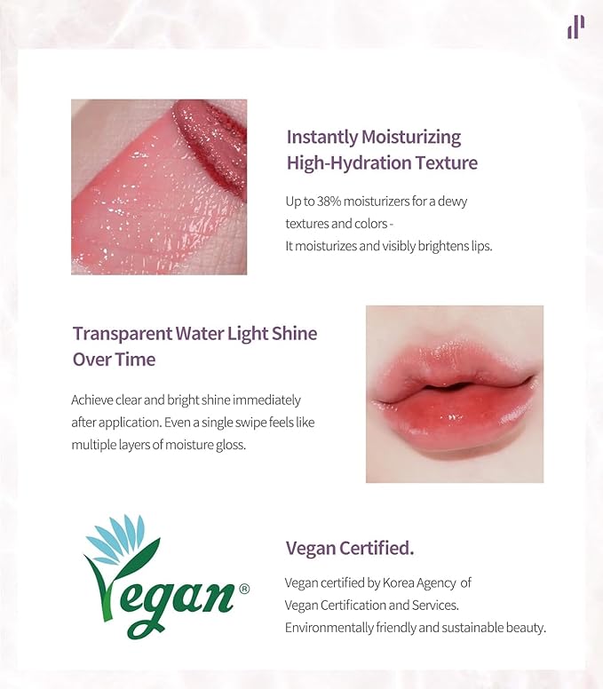Heart Percent Dote On Mood Pure Glow Tint, Watery & Lightweight Moisturizing Lip Stain Long Lasting Liquid Lipstick 6.8g, #17. Flash Pink
