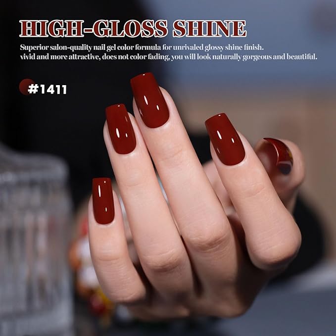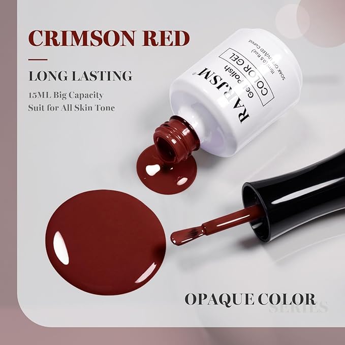RARJSM Crimson Red Gel Nail Polish Creamy Dark Deep Red Gelpolish 15ML 1Pc Soak off Curing Required Nail Art French Manicure Salon DIY at Home Fall Winter