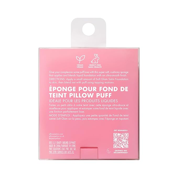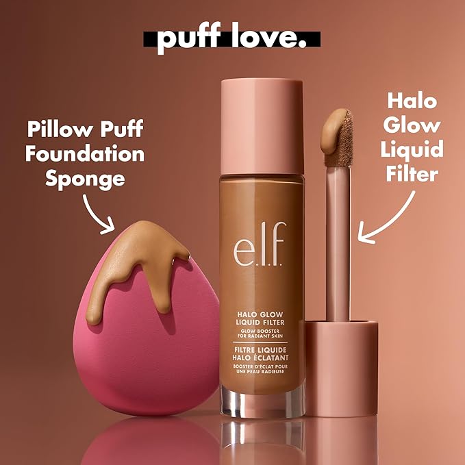 e.l.f. Pillow Puff Foundation Sponge, Bouncy, Ultra-Soft Foam Makeup Sponge For Liquid Foundation, Creates An Airbrushed Finish, Vegan & Cruelty-Free