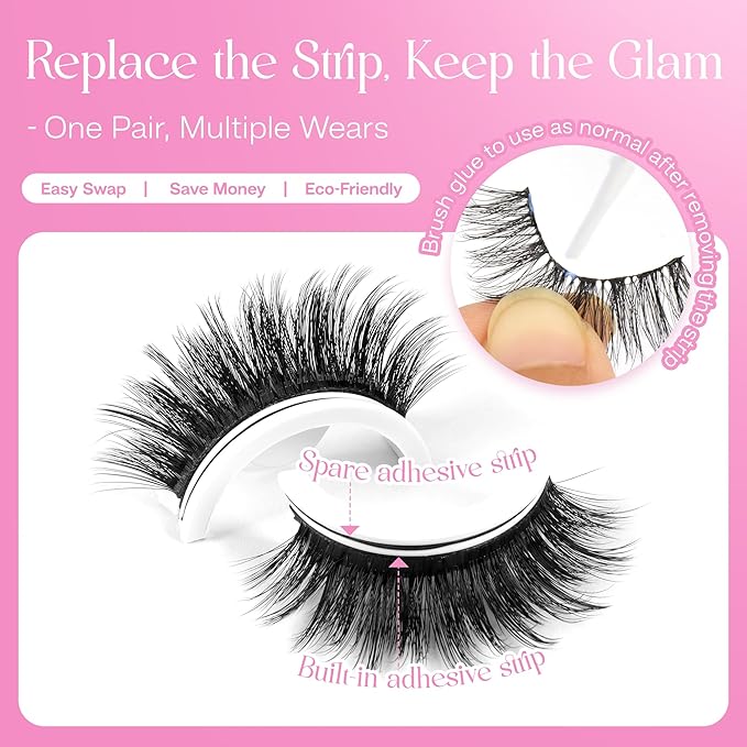 CALAILIS Self Adhesive Eyelashes 5 Pairs Natural Look Press On Lashes No Glue Need Eyelashes Reusable Wispy Self-adhesive False Lashes with Replacement Adhesive Strips (B814)