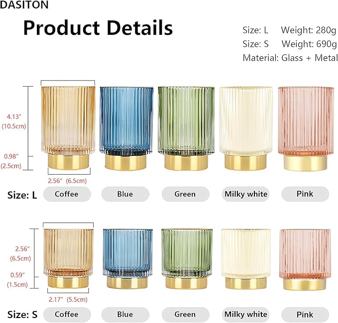 DASITON Makeup Brush holder Organizer,Crystal Cosmetic Makeup Brush Glass Brushes Storage Holder, Vintage Make Up Brush Cup Pen Pencil Holder striped vase(Pink S+L)