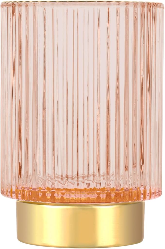 DASITON Makeup Brush holder Organizer,Crystal Cosmetic Makeup Brush Glass Brushes Storage Holder, Vintage Make Up Brush Cup Pen Pencil Holder striped vase(Pink L)