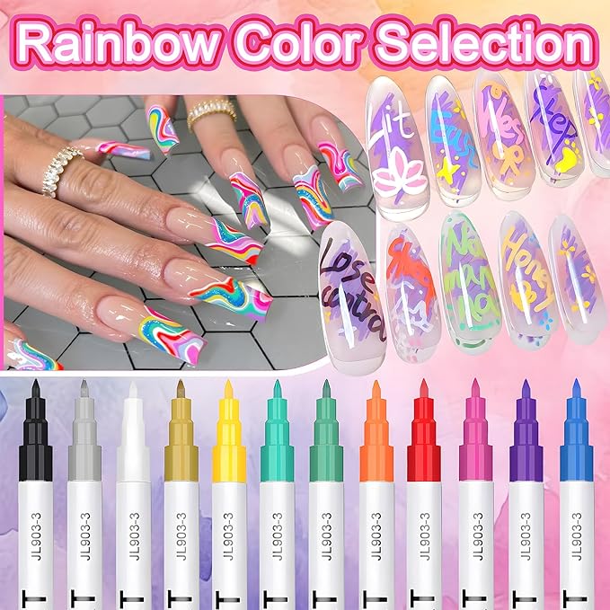 About This Package Include: 12 Vivid Water-Based Nail Art Graffiti & Dotting Pens - featuring classic yet eye-catching hues for... Read more