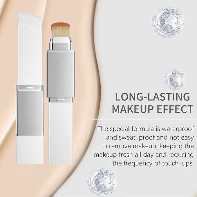 Blanc Cover Cream Stick - Korean Color Changing Foundation Stick V - Dual-Ended with Detachable Brush, Medium to Full Coverage Base Makeup, Portable for Daily Use (Natural)