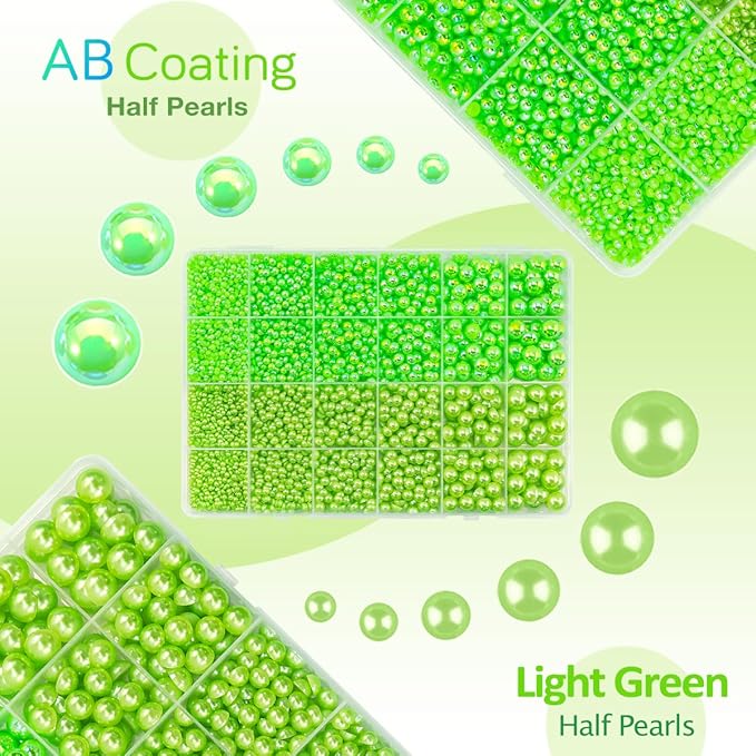 qiipii 2 Styles Solid Green+ Light Green AB Flatback Pearls for Bedazzling Crafting 3mm-10mm Half Round Pearls Beads Gems Bedazzler Kit for Nails Face Eyes Makeup Tumblers Bottles Crafts Shoes Beauty
