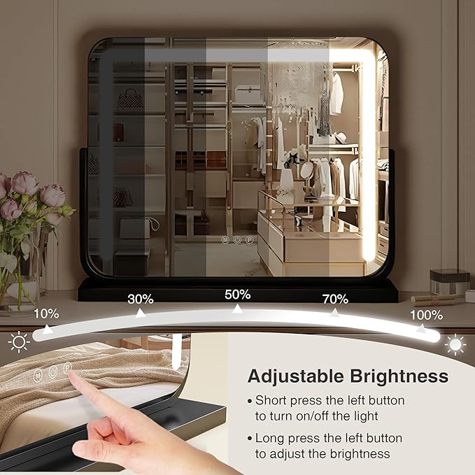 Vanity Mirror with Lights 21"×15.7" LED Makeup Mirror,Dimmable Smart Touch Control Mirror with Lights for Bedroom Tabletop, 360° Rotation,Vanity Mirror Square Black,Ideal Gifts for Her