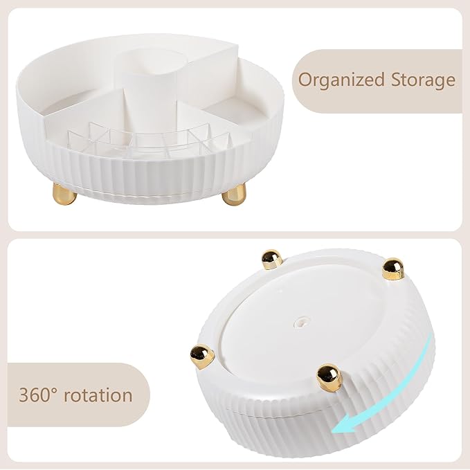 Anyoifax Makeup Perfume Organizer Tray with Divider 360 Degree Rotating Lazy Susan Skincare Lotion Organizer Spinning Cosmetics Storage for Dresser, Vanity, Bathroom Countertop, Large White