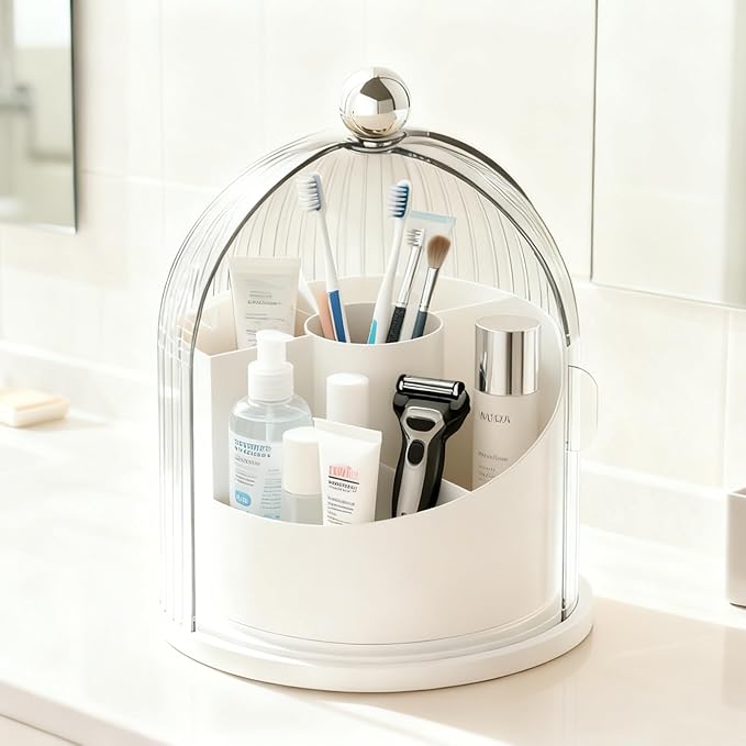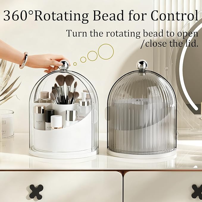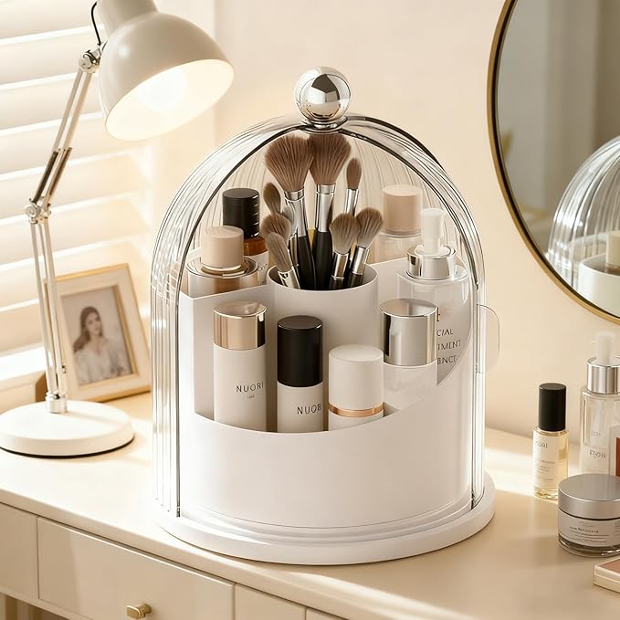 ONXE Makeup Brush Holder Organizer with Lid,360° Rotating Makeup Organizer Countertop,5 Compartments Make Up Brush Organizers for Makeup Brushes,Cosmetics,Skincare,Nail Polish,Toothbrush,Dustproof