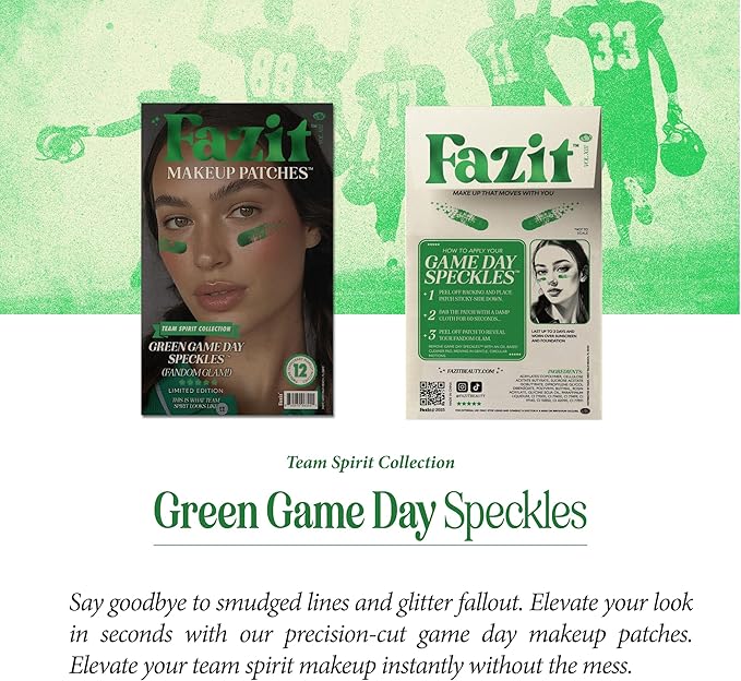 Fazit Makeup Patches - Green Game Day Speckles - Glow Up Make-Up Patches - Cute Glitter Makeup Accessories for Women - Cosmetic Glitter for Face