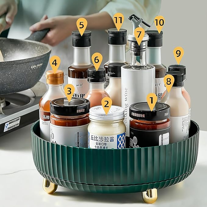 Anyoifax Makeup Perfume Organizer Tray 360 Degree Rotating Lazy Susan Skincare Lotion Organizer Spinning Cosmetics Storage for Dresser, Vanity, Bathroom Countertop, Large Teal Green