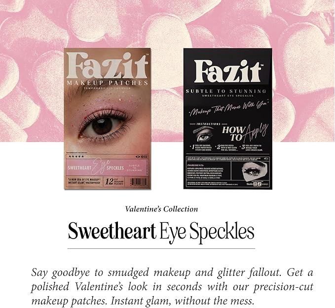 Fazit Makeup Patches - Sweetheart Eye Speckles - Glow Up Make-Up Patches - Cute Glitter Makeup Accessories for Women - Cosmetic Glitter for Face